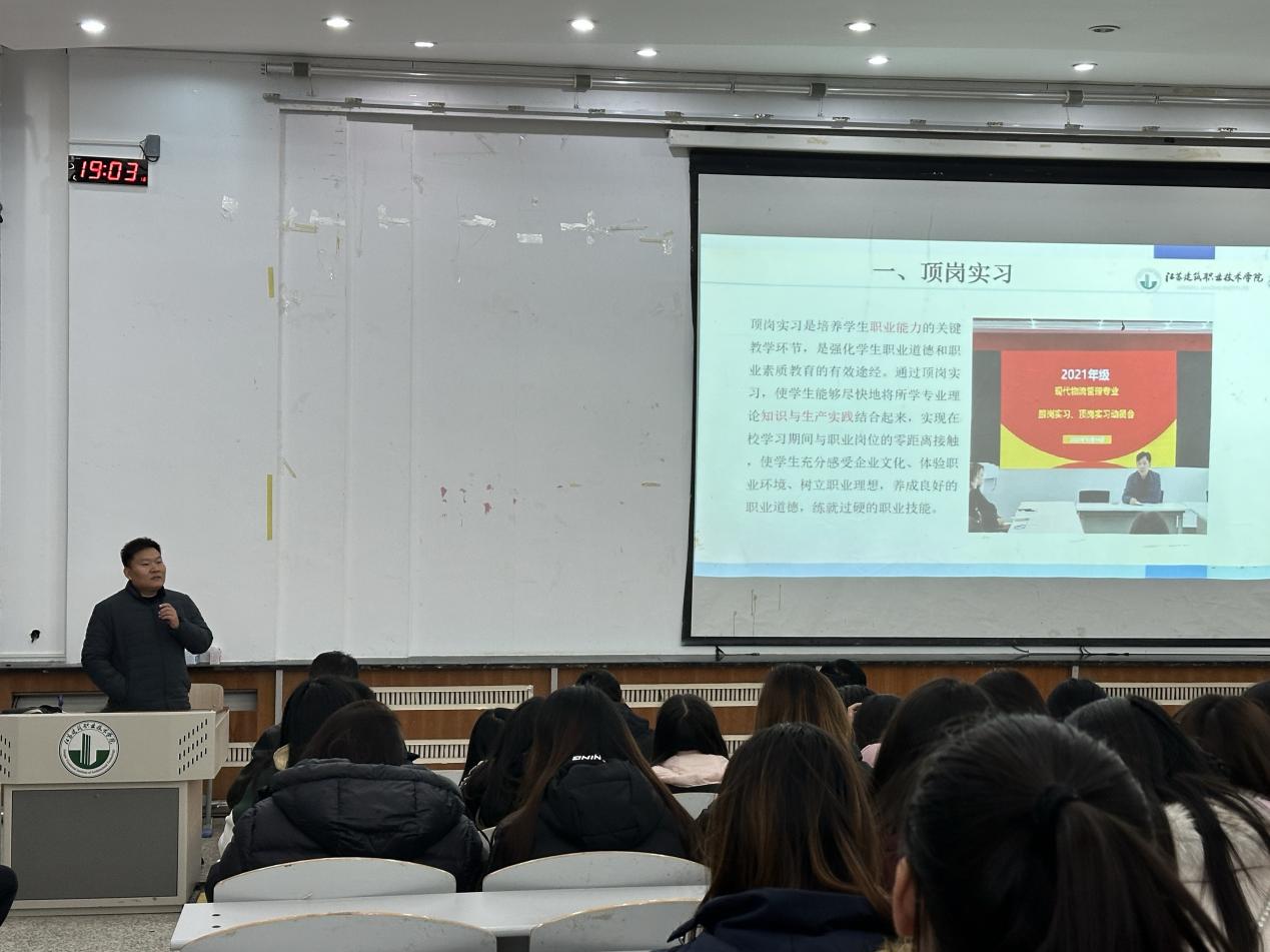 会议伊始,副院长乔万冠以其敏锐的行业洞察,深入剖析了顶岗实习的必要性和重要性,为即将踏入社会的同学们精心规划了实习安排与要求。他强调,实习不仅是大学生涯的最后一堂实践大课,更是检验专业技能、培养职业素养、提升社会适应能力的黄金时期。乔万冠副院长要求同学们在实习期间严于律己,勤勉尽责,充分利用这次实践机会,不断锤炼自我,提升专业素养。同时,他还针对实习过程中可能遇到的各种挑战与困惑,为同学们提供了切实可行的建议与解决方案。