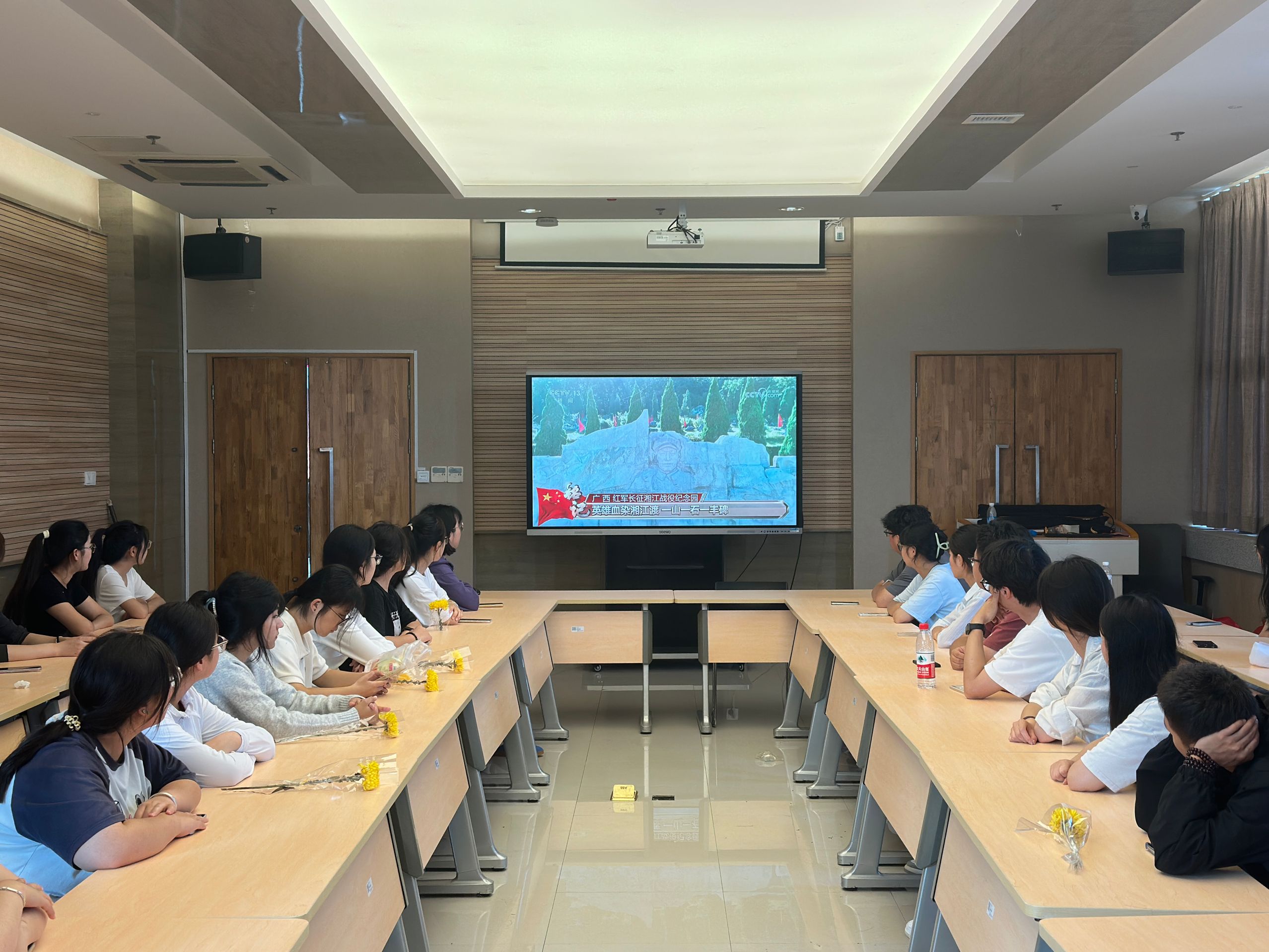 活动伊始,同学们在学院会议室集体收看了在北京天安门广场隆重举行的烈士纪念日向人民英雄敬献花篮仪式现场直播。伴随着庄严低回的《献花曲》,党和国家领导人同各界代表一起,向人民英雄敬献花篮,深切缅怀为民族独立、人民解放和国家富强、人民幸福英勇献身的烈士。收看现场,会议室内气氛肃穆,同学们全程端坐、神情专注,沉浸在庄严神圣的氛围中,深刻感受到跨越时空的精神感召,接受了一次深刻的思想洗礼和爱国主义教育。