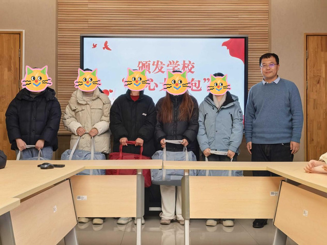 活动伊始,许琳老师为同学们详细介绍了“冬日送暖”系列资助政策。随后进入温暖传递环节——物资发放仪式。李国琴、崔廷锋和许琳分批为受助学生送上寒衣、爱心大礼包及生活用品礼包,并与同学们亲切合影。一份份物资满载关爱,既抵御了严寒,也寄托着学院对学生的深切关怀与期望。